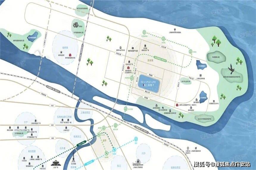 高端生活配套:陈家镇东滩板块将打造郊野度假主题公园配合自行车公园,岛上海船级游艇码头(规划)、36洞海岛高尔夫、赛事级马术运动中心、五星级酒店等五大高端国宾级配套,打造海岛生态旅游为特色的度假圣地,同时东滩北侧预留了30000亩主题乐园用地。