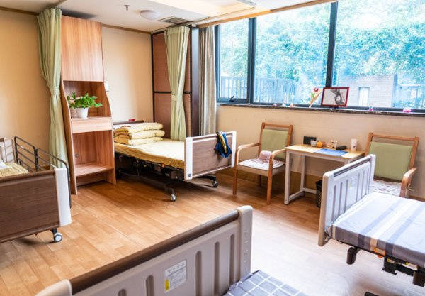 老人房间设施:护理床、呼叫器、储物柜、床头灯、电视、空调、冰箱、电话、独立卫生间、热水器、洗衣机、采暖、新风系统、智能监测设备、书桌