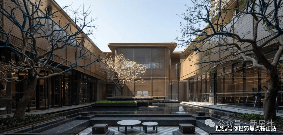 下沉式会所。环绕天光水院的,是棋牌茶室、健身房、瑜伽室、游泳池、四点半学堂