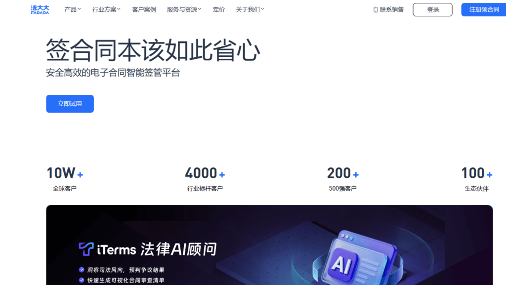 法大大是目前国内市场占有率领先的电子合同平台之一,以产品易用性和强大的生态兼容性著称。它与钉钉、SAP、金蝶等主流办公软件深度打通,让用户可以在日常使用的系统中直接发起签署,极大地降低了员工的学习成本。