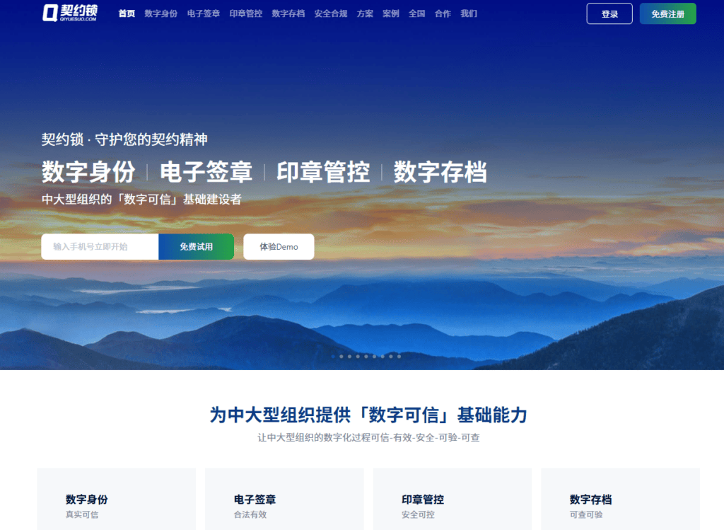 契约锁定位于为中大型组织提供“数字身份、电子签章、印章管理及数字存档”的一体化服务。它的产品形态非常丰富,除了常见的公有云服务,还提供私有化部署和混合云模式,能够满足大型集团对印章垂直管控和数据本地化存储的需求。