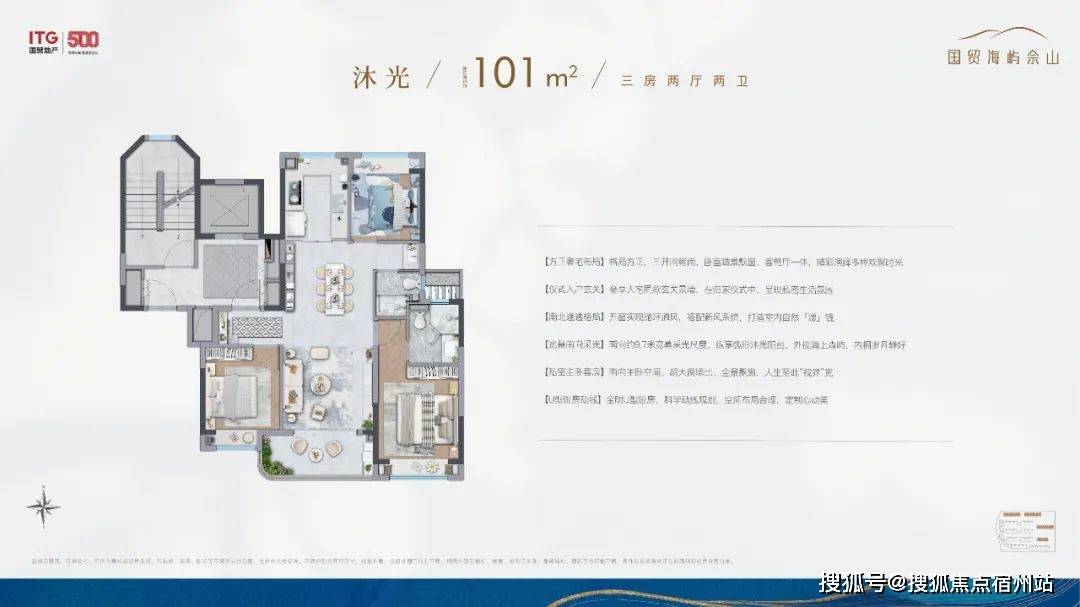 除了叠墅外,全社区仅4幢建面约101㎡沐光全景小高层,通过前瞻排布,几乎做到了户户景观无遮挡。