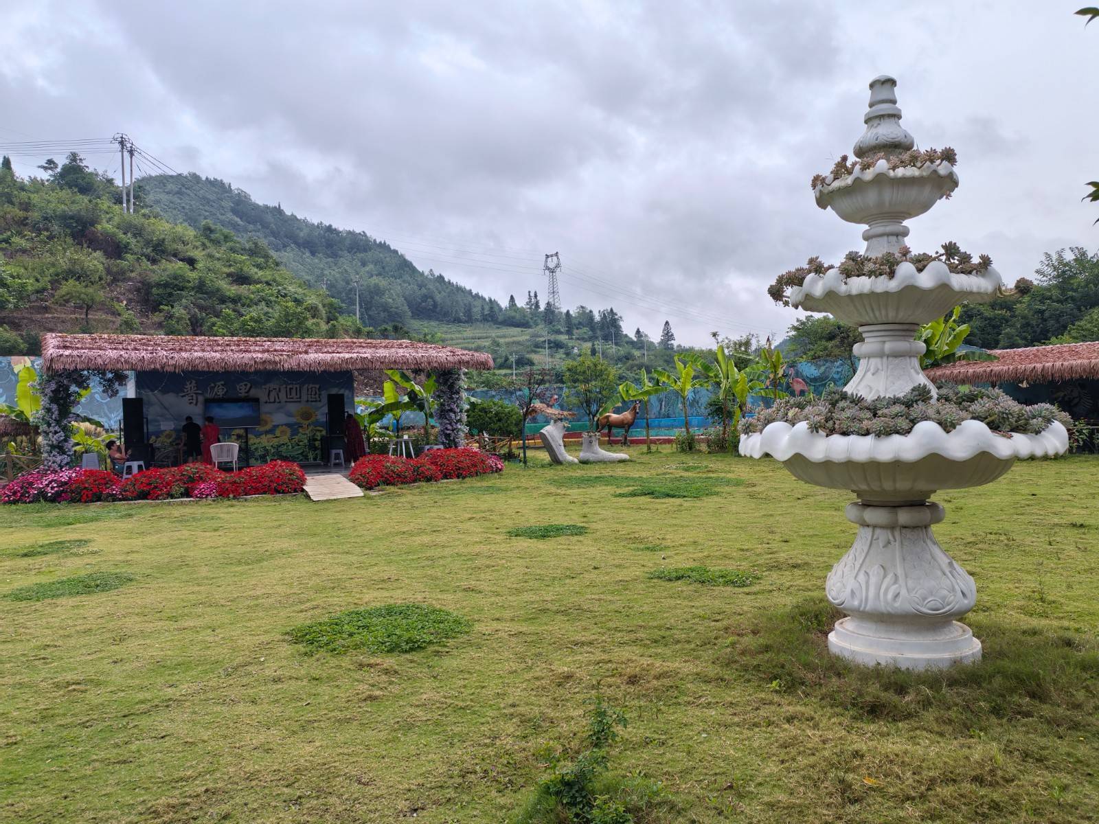 “普源里”民宿周围,各式各样的精美雕塑琳琅满目,有群鹭栖息、乐队演奏、苗族同胞最热情的“高山流水”敬酒仪式等场景,也有孔子、阳明先生、维纳斯等单体雕塑。再加上类型多样的打卡点和精美的园艺设计,田园风光与人文景观相得益彰,让客人们沉醉其中,流连忘返。
