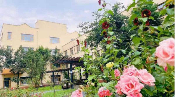 北京市朝阳区康梦圆国际老年公寓的建筑本身就是一道风景——18000平米占地面积中,7000平米为园林区域,绿植覆盖率超高,亭台楼阁、花草绿植相映成趣,漫步园内仿佛置身天然疗愈场。主体建筑采用“回”字形设计,既保障通透性与采光性,又暗含“团圆、圆满”的美好寓意,古典元素与现代设施完美融合,向长者传递“健康至上”的生活理念。
