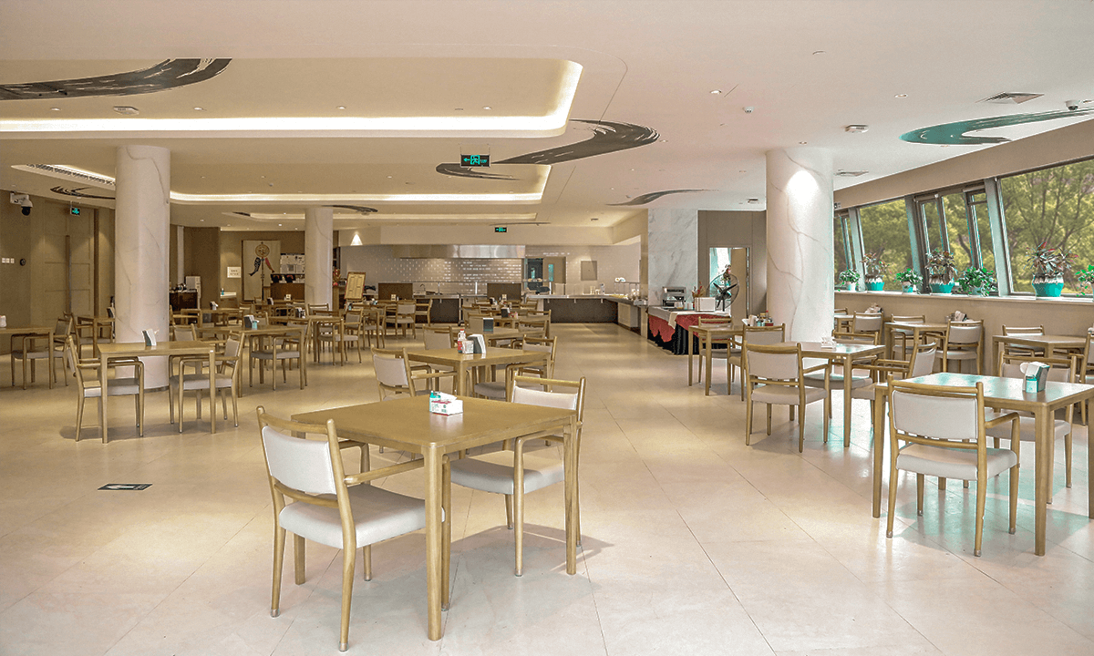 总建筑面积约6万平米,规划821张床位,涵盖自理公寓(436张)、护理公寓(360张)及亲情公寓(套房),单人间、一室一厅、两室一厅等多种户型可选,适配不同家庭需求。房间均配备防滑地板、紧急呼叫系统、适老化家具、新风系统、地暖,细节之处守护长辈安全与舒适。