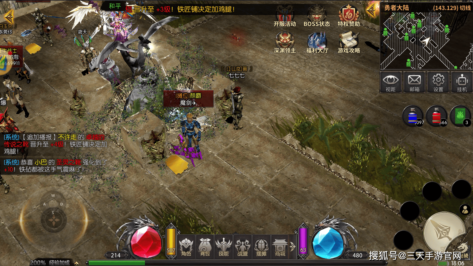 游戏完整复刻恶魔广场、血色城堡、世界BOSS等经典玩法,同时保留翅膀系统、战盟攻城、跨服竞技、自动回收等核心内容,让玩家重温当年组队刷本、争夺BOSS、并肩攻城的热血场景。恶魔广场的限时挑战、世界BOSS的全服狂欢、战盟攻城的百人同屏,每一项玩法都兼顾协作与对抗,再现当年的社交乐趣与竞技激情。