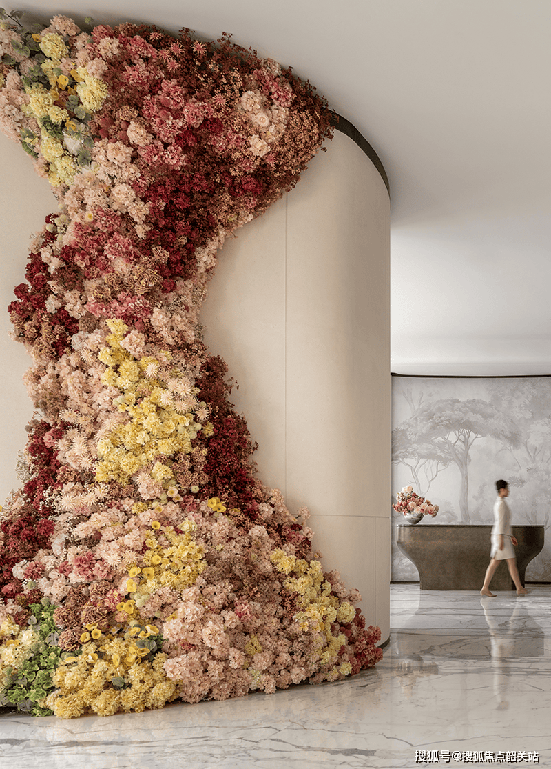 在广州·鹏瑞1号的室内设计中,CCD完美诠释了“东意西境”的理念。他们将中国传统文化元素与现代设计手法相结合,创造出了独具特色的空间氛围。大堂空间以凤凰形体为灵感,绣球花以丰富层次与蓬松质感配合诸多系列花材,完美地展现了凤凰羽翼的绚丽。人文意韵的舒展、雅趣与价值认同,融合到现代生活方式中,并在这个空间的呈现中达到极致。所谓的“花之巧思”,让人在景中,景在窗中,感受时光在花开的轮回里慢慢流淌。