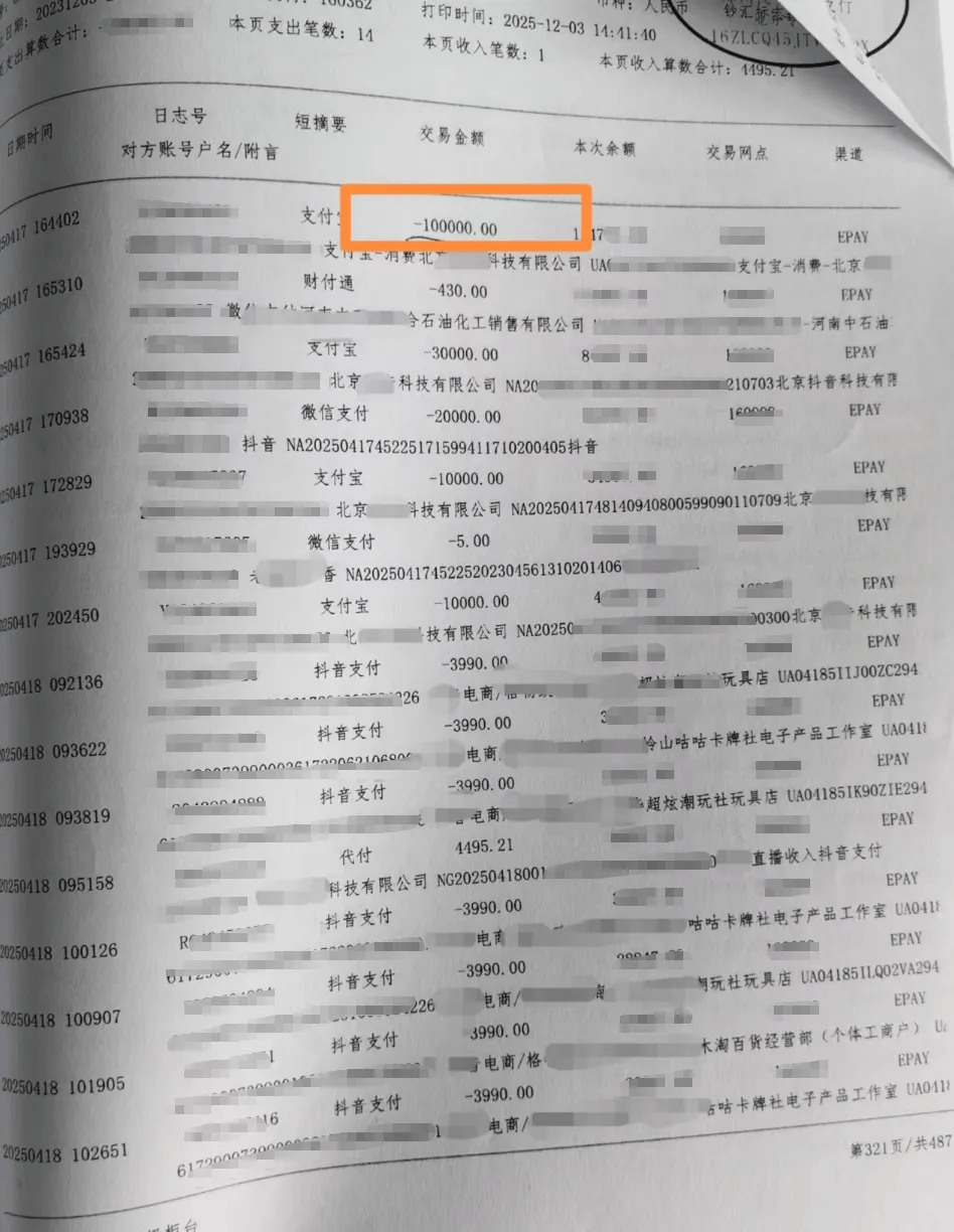 朱先生表示,收款方为直播平台的款项,均是直播间打赏,收款方是商户的是购买拆卡盲盒。“春节前,家人曾以诈骗案报警,主播们同意退还部分资金。但后来,他们可能觉得够不上诈骗罪,又不同意退钱。”