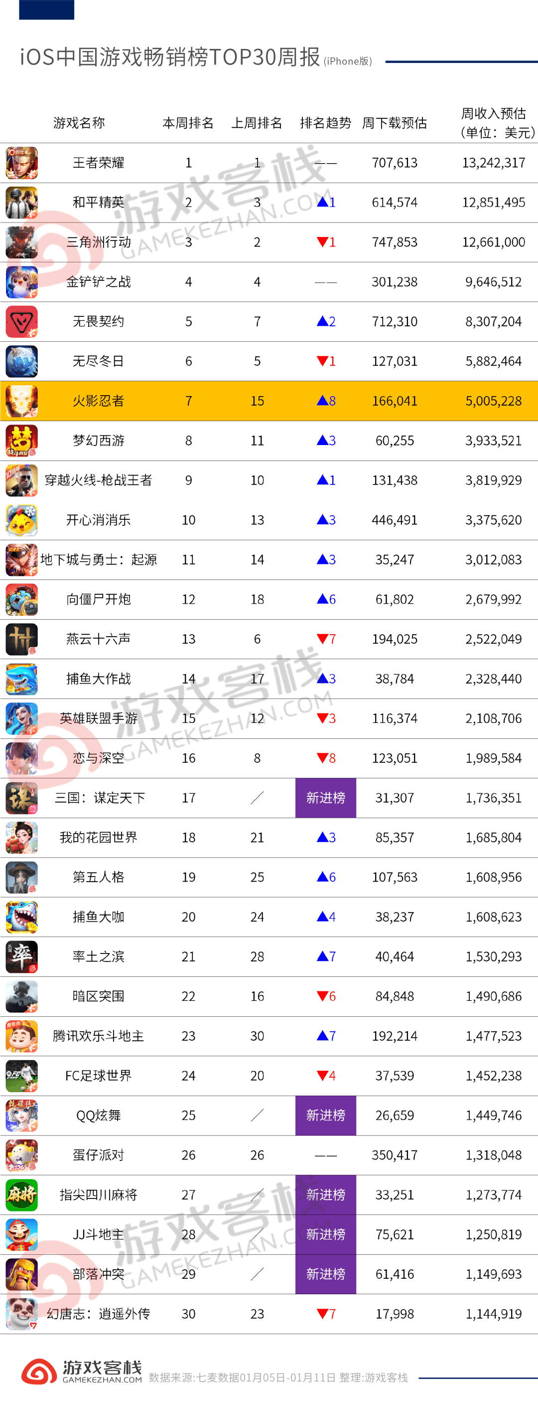 2026-01-13棋牌平台,棋牌官网网站,棋牌游戏APP下载根据七麦数据统计来看,很长一段时间里,在iOS中国大陆游戏畅销榜上出现的产品几乎都是运营超过一年的精品,少有登场即爆的黑马游戏,上周整体排名变化不大,共有3款游戏预估周收入超过1000万美元,另外,《三国:谋定天下》《部落冲突》等5款游戏重新回归。