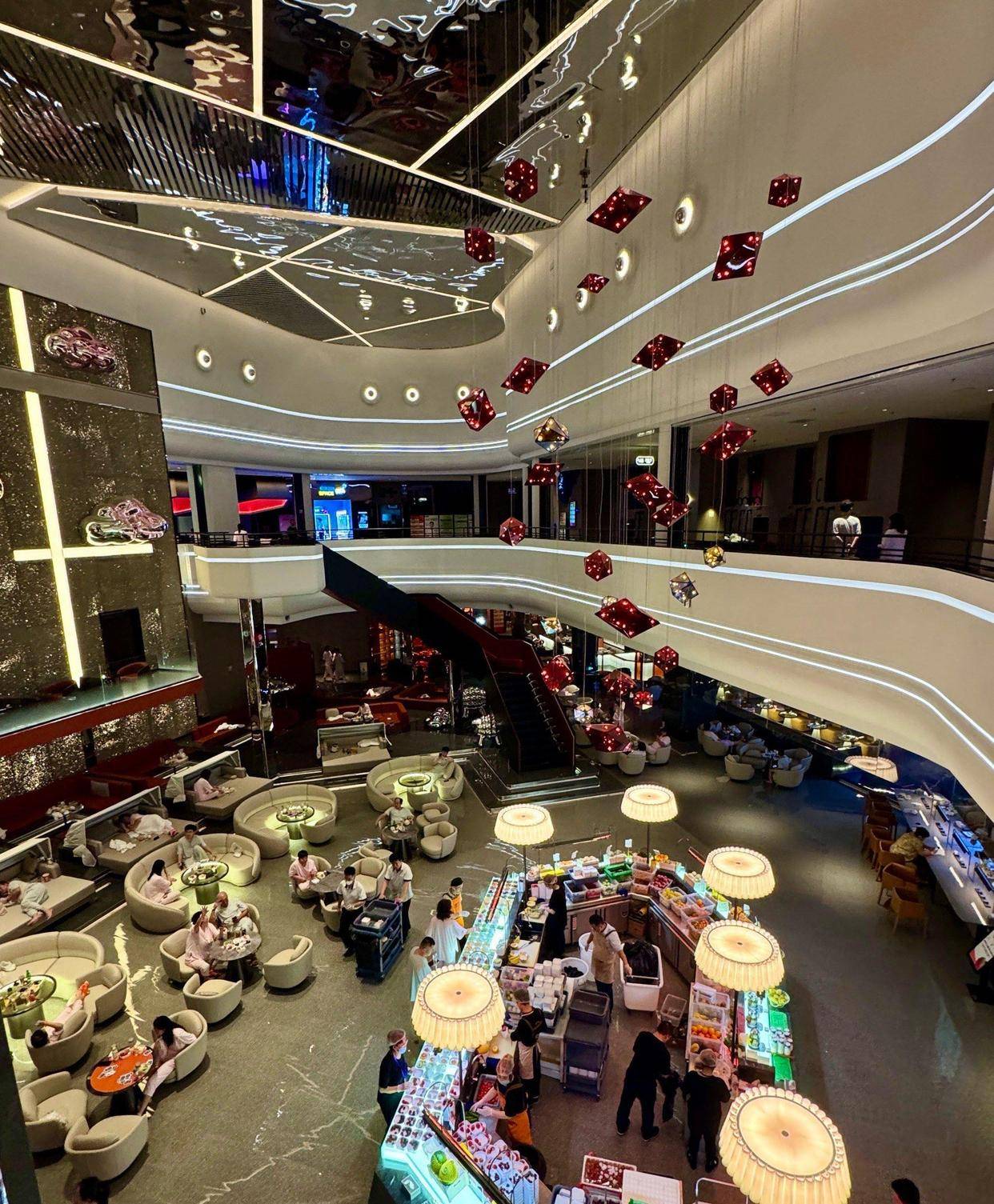 年轻人在这里追求的,远不止是清洁身体。 走进任意一家现代水会汤泉,你会发现这里早已不是传统澡堂的模样。 拼豆手工区、PS5游戏机、电影院、KTV、桌游室……各种娱乐设施一应俱全。 在广州,有洗浴中心的自助餐甚至卷到了“帝王蟹、鱼子酱、鹅肝、生蚝”的程度。 美团在《2025年全国洗浴行业趋势报告》中,直接将2025年定义为“洗浴发展元年”。 报告指出,洗浴中心已从“北搓澡、南汤泉”的区域特色,演变为南北融合、集洗浴、餐饮、娱乐于一身的一站式综合休闲场所。